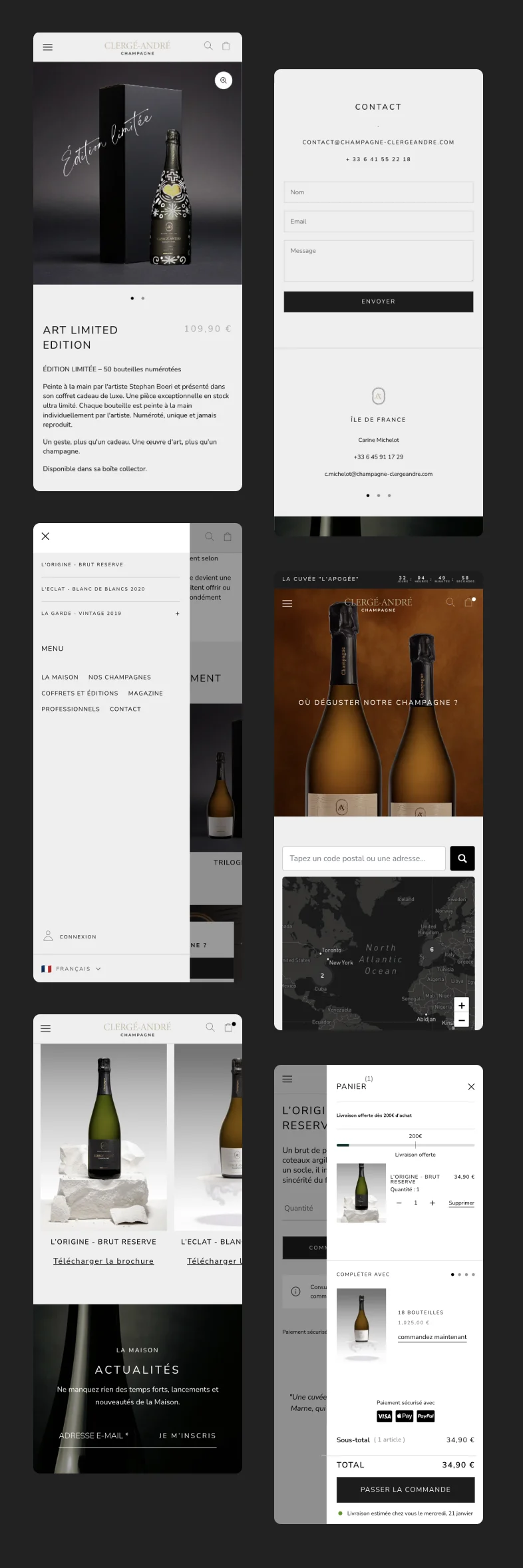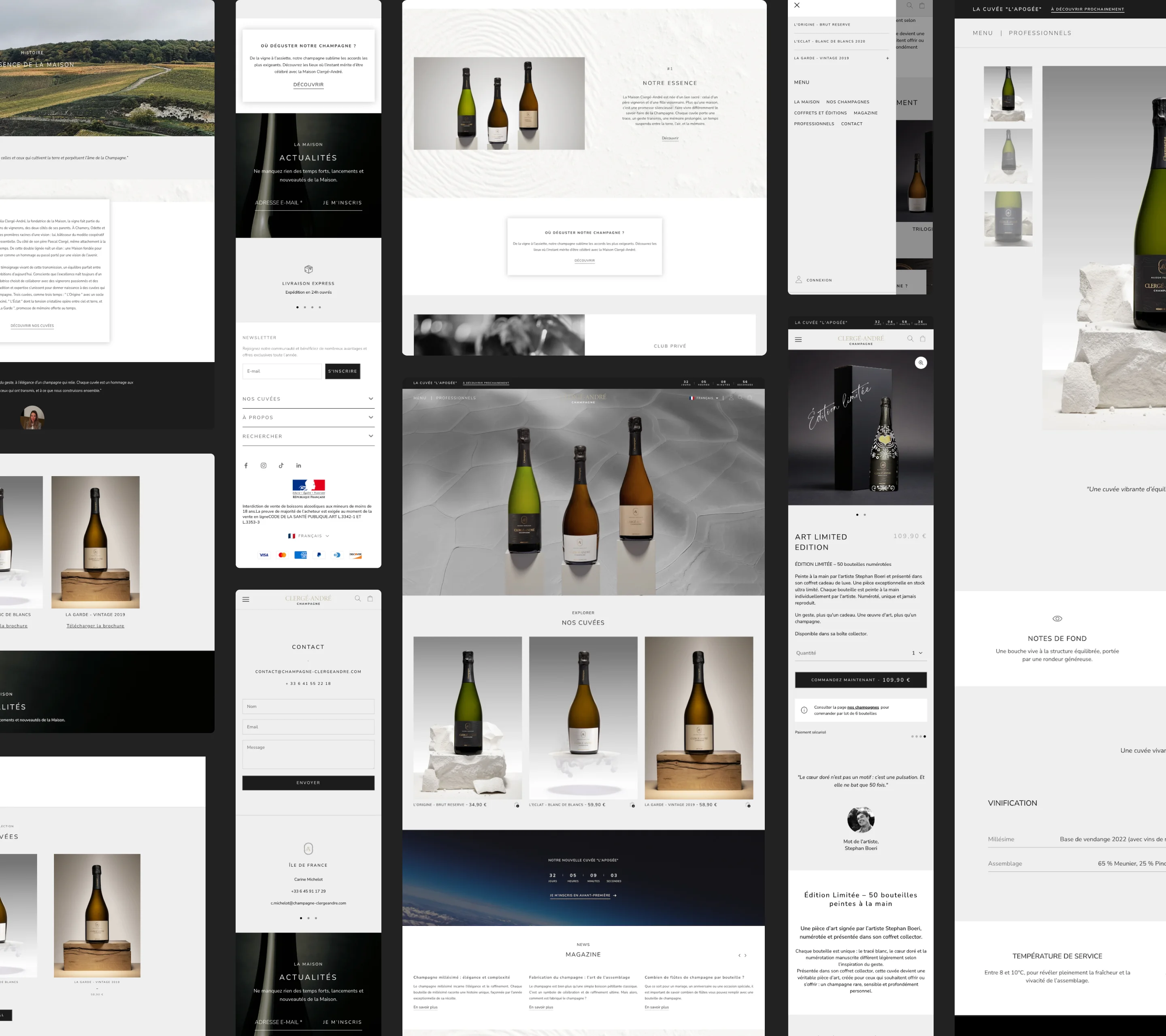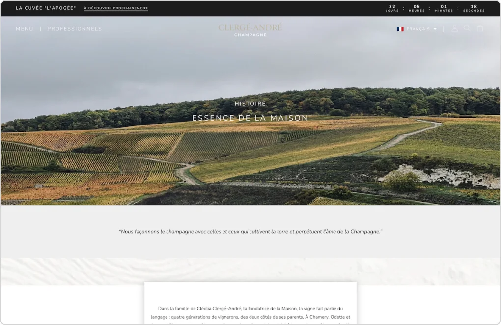 Pour Clergé-André, maison spécialisée dans les vins et spiritueux, le projet avait pour objectif de moderniser l’expérience e-commerce tout en simplifiant le parcours utilisateur. Le site existant sous WordPress ne permettait plus d’offrir une navigation suffisamment claire ni un cadre optimal pour accompagner la conversion.